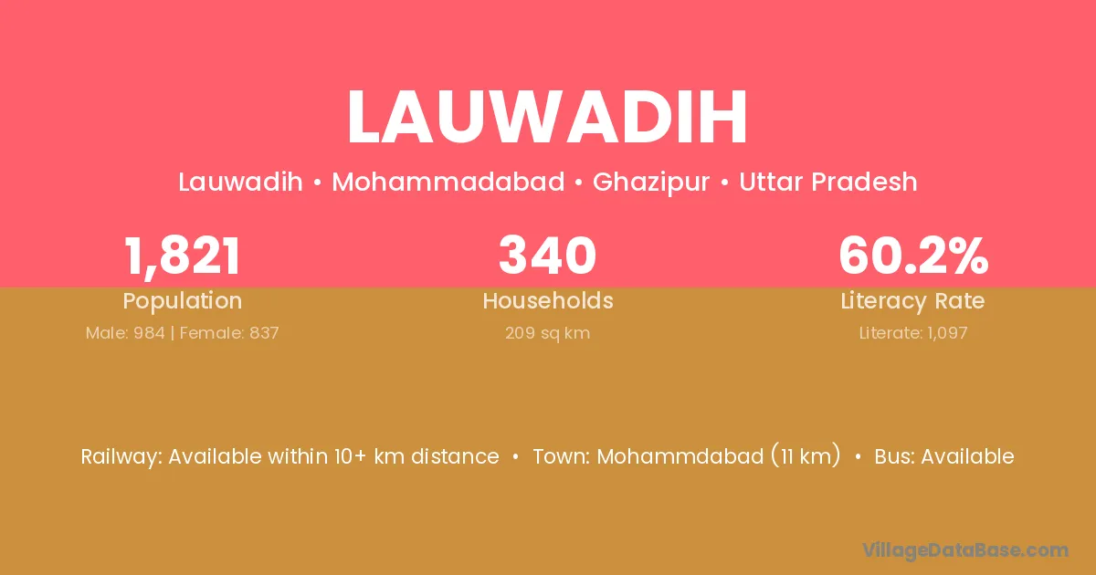 Mohammdabad (11 km) is the nearest town to Lauwadih village for major economic activities and is located approximately 11 km away.