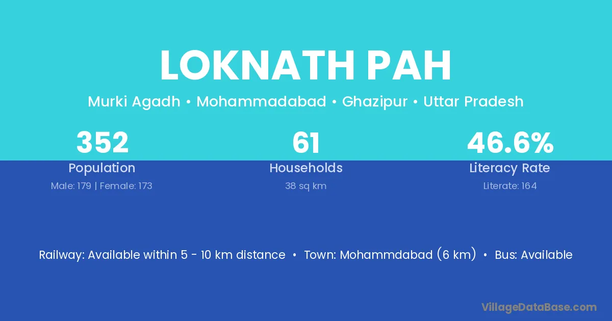 Mohammdabad (6 km) is the nearest town to Loknath Pah village for major economic activities and is located approximately 6 km away.