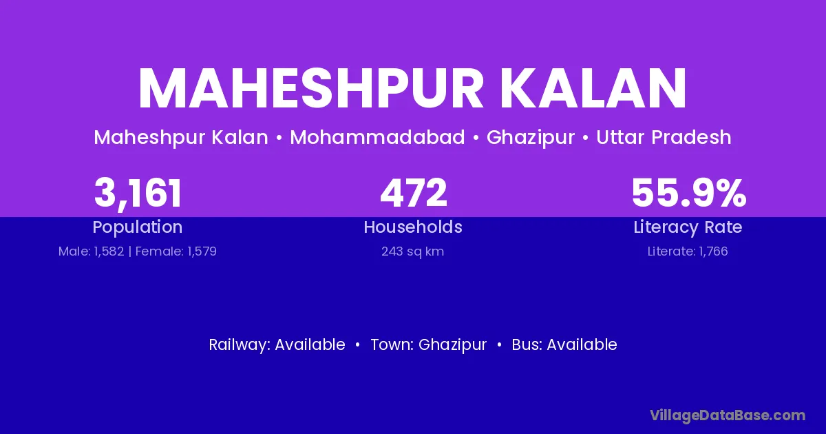 Ghazipur is the nearest town to Maheshpur Kalan village for major economic activities