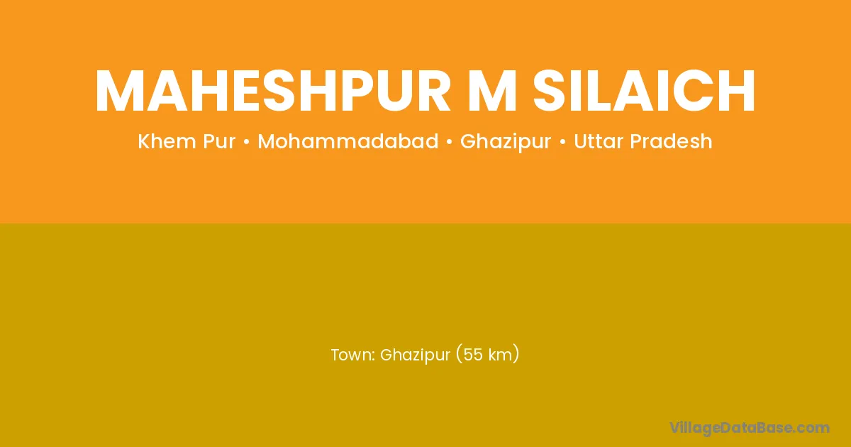 Ghazipur (55 km) is the nearest town to Maheshpur M Silaich village for major economic activities and is located approximately 55 km away.