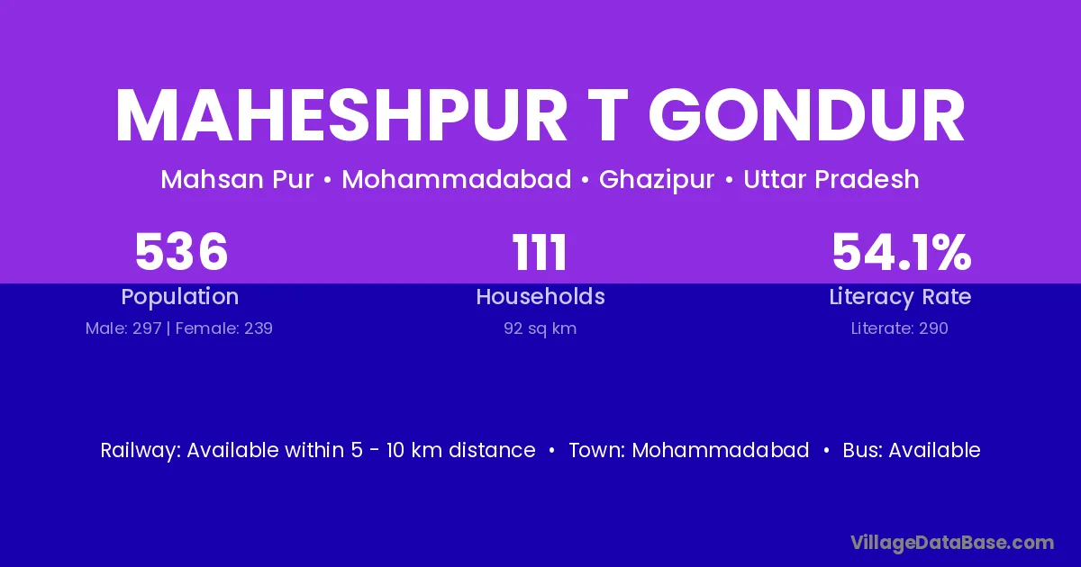 Mohammadabad is the nearest town to Maheshpur T Gondur village for major economic activities