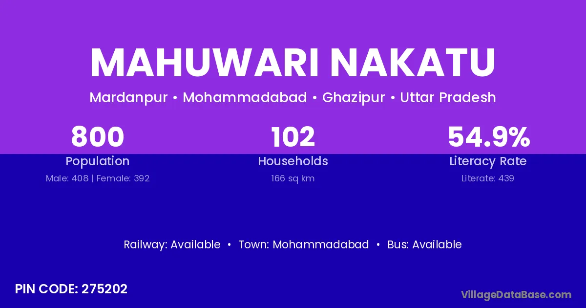 Mohammadabad is the nearest town to Mahuwari Nakatu village for major economic activities