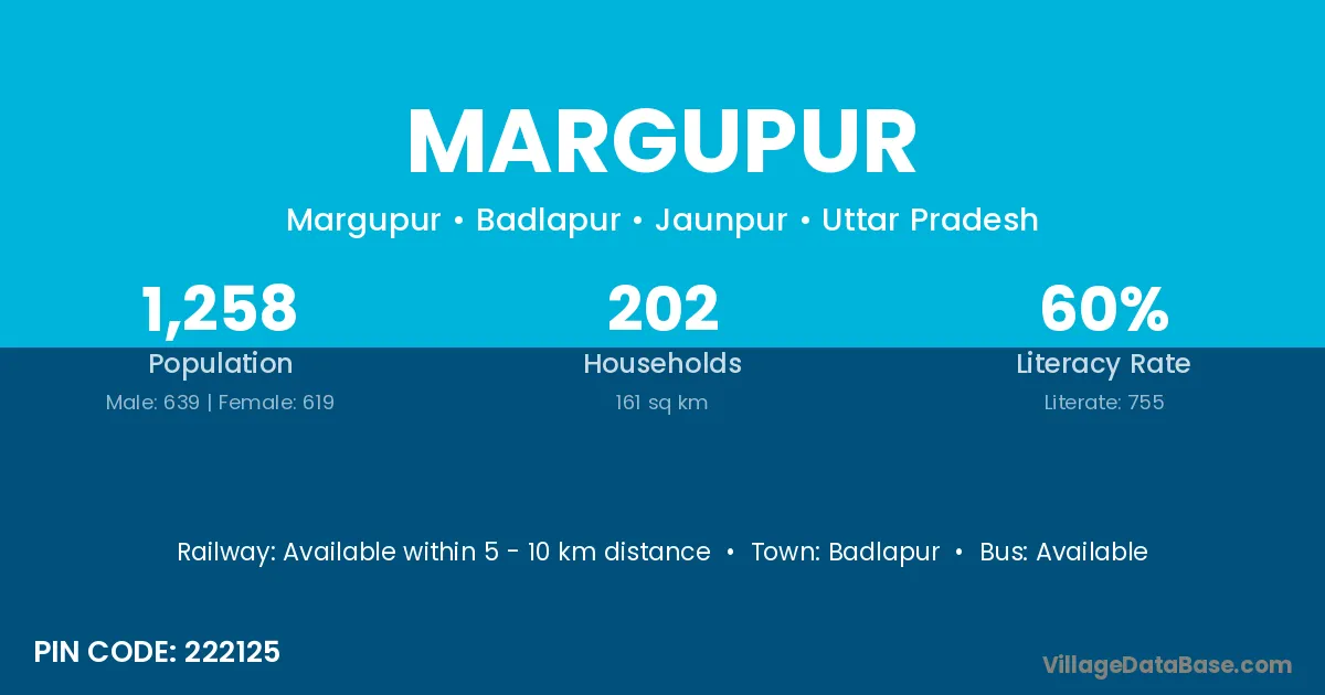 Muhammadabad (16 km) is the nearest town to Margupur village for major economic activities and is located approximately 16 km away.