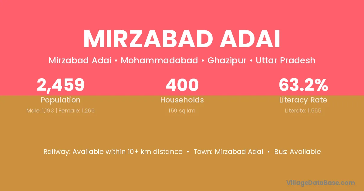 Mirzabad Adai village has a total population of 2,459 people, of which 1,193 are males and 1,266 are females.