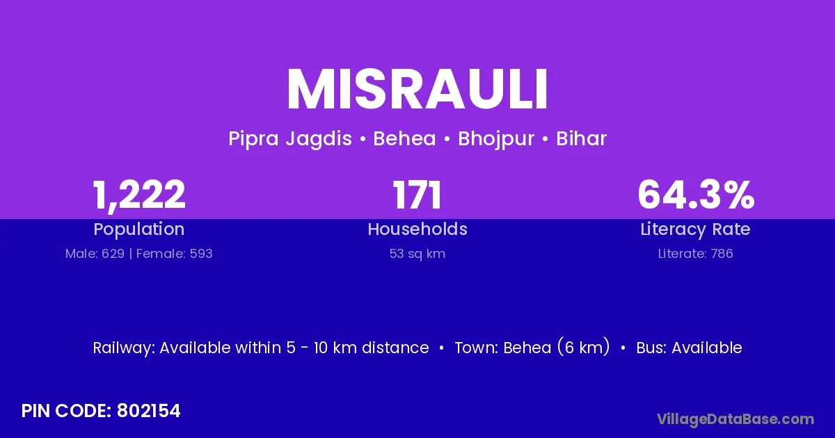 Muhammadabad (25 km) is the nearest town to Misrauli village for major economic activities and is located approximately 25 km away.