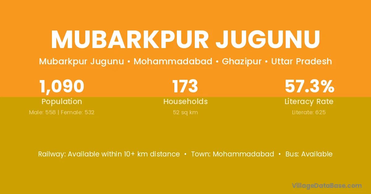 Mubarkpur Jugunu village has a total population of 1,090 people, of which 558 are males and 532 are females.
