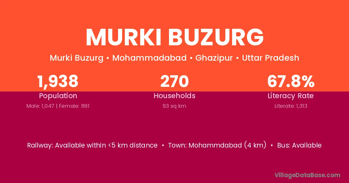 Mohammdabad (4 km) is the nearest town to Murki Buzurg village for major economic activities and is located approximately 4 km away.