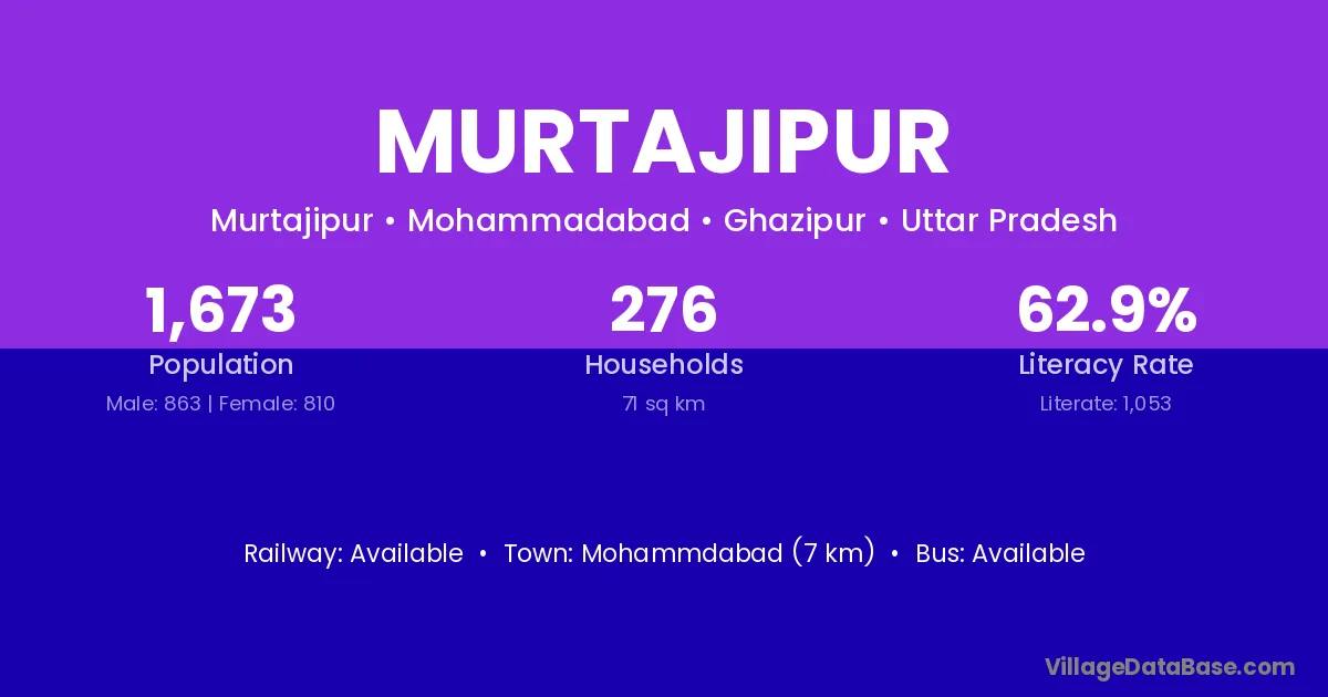 Mohammdabad (7 km) is the nearest town to Murtajipur village for major economic activities and is located approximately 7 km away.