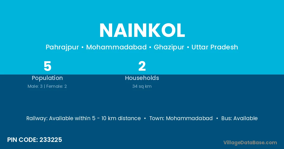 Nainkol village has a total population of 5 people, of which 3 are males and 2 are females.