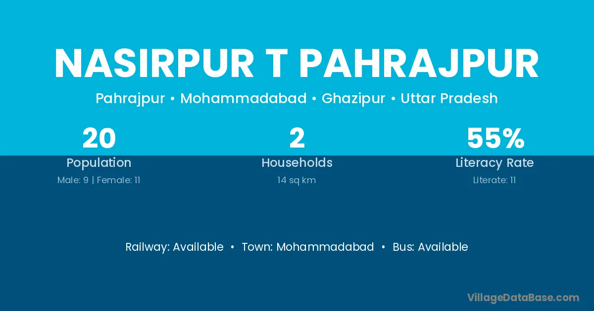 Nasirpur T Pahrajpur village has a total population of 20 people, of which 9 are males and 11 are females.