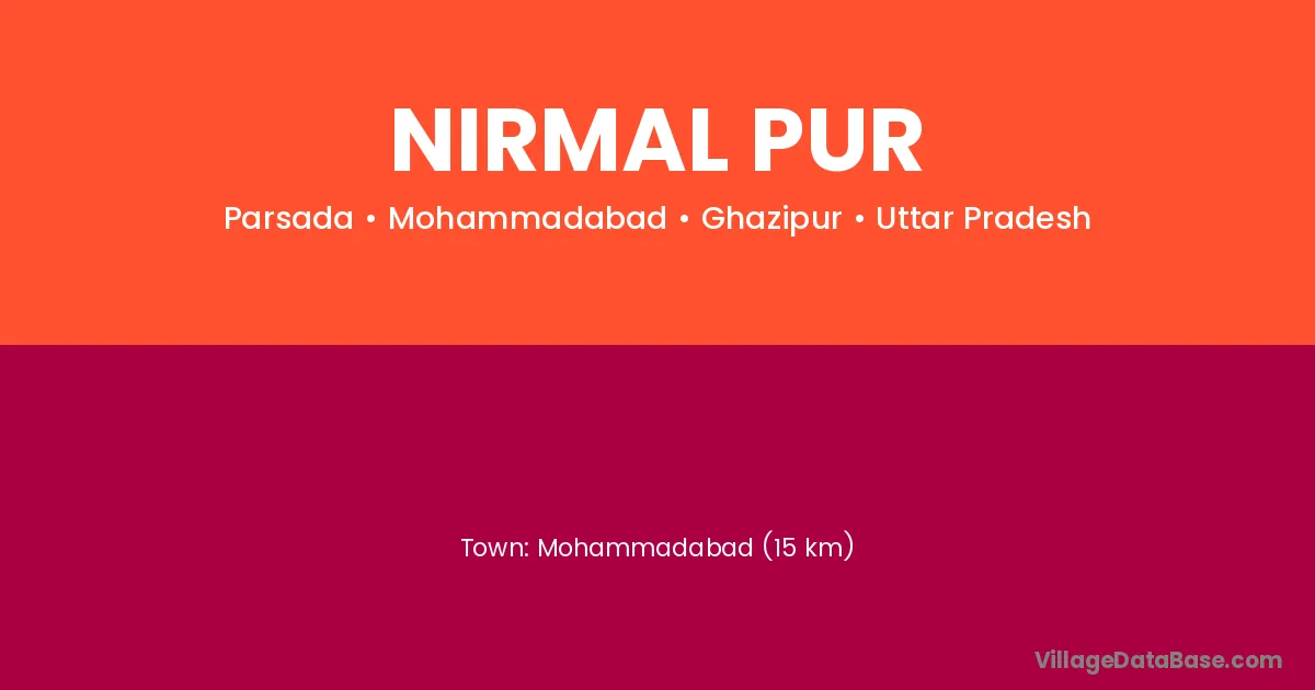 Mohammadabad (15 km) is the nearest town to Nirmal Pur village for major economic activities and is located approximately 15 km away.