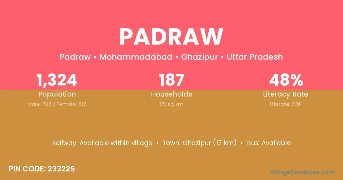 Ghazipur (17 km) is the nearest town to Padraw village for major economic activities and is located approximately 17 km away.
