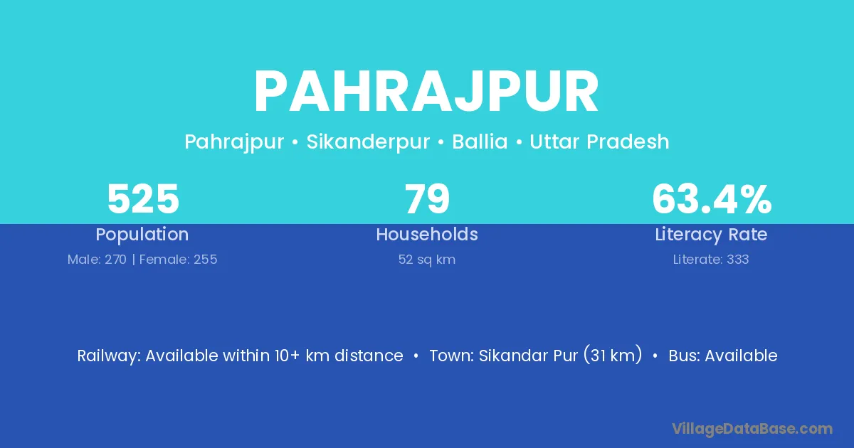 Ghazipur (22 km) is the nearest town to Pahrajpur village for major economic activities and is located approximately 22 km away.