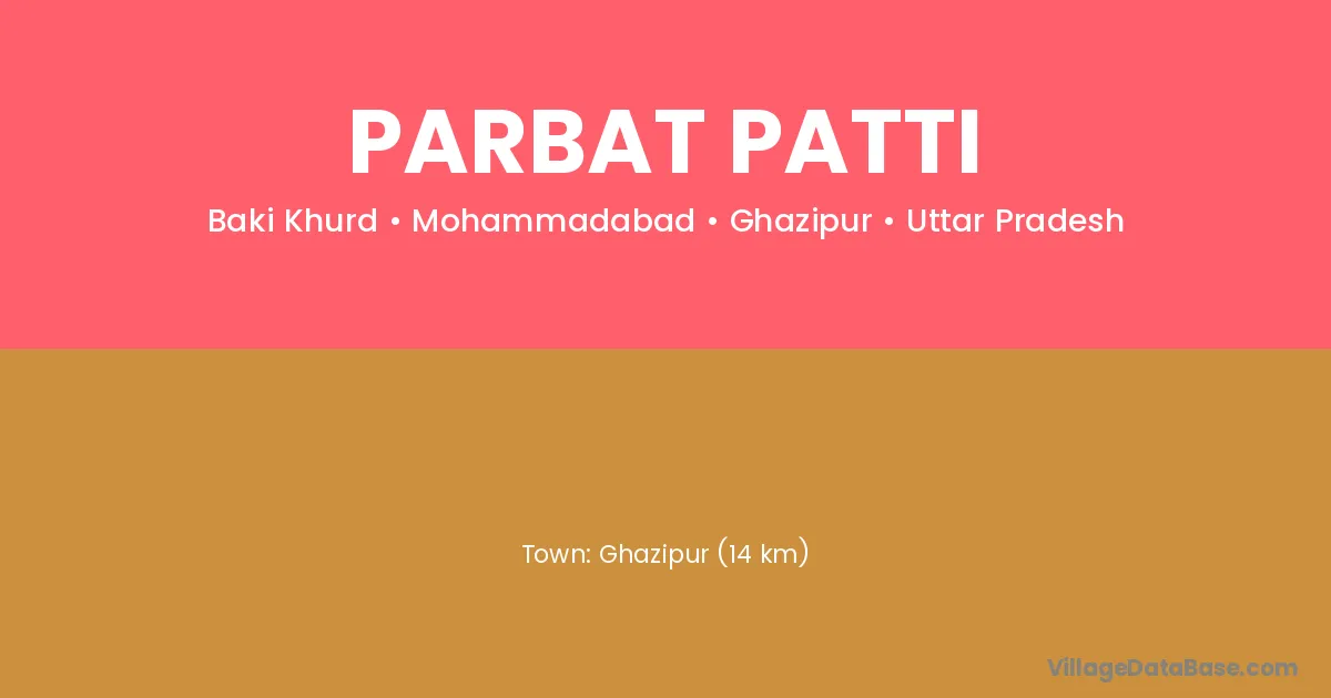 Ghazipur (14 km) is the nearest town to Parbat Patti village for major economic activities and is located approximately 14 km away.
