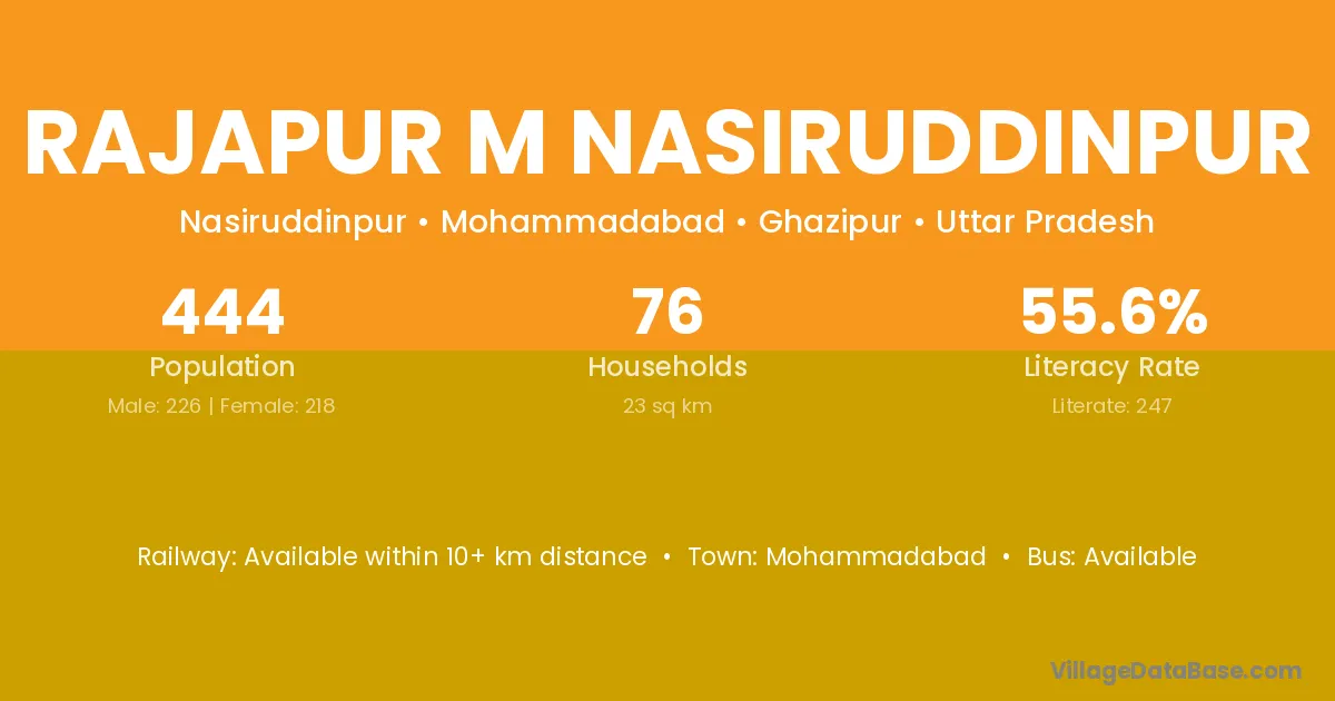 Rajapur M Nasiruddinpur village has a total population of 444 people, of which 226 are males and 218 are females.