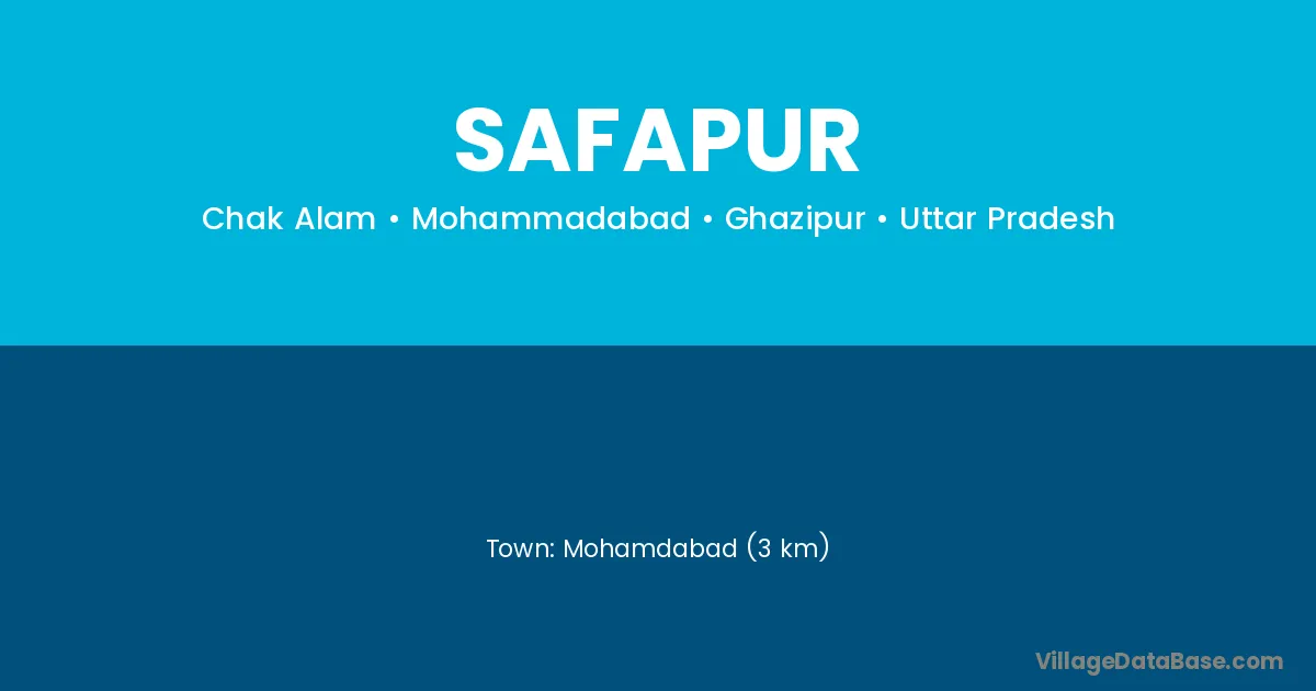 Mohamdabad (3 km) is the nearest town to Safapur village for major economic activities and is located approximately 3 km away.