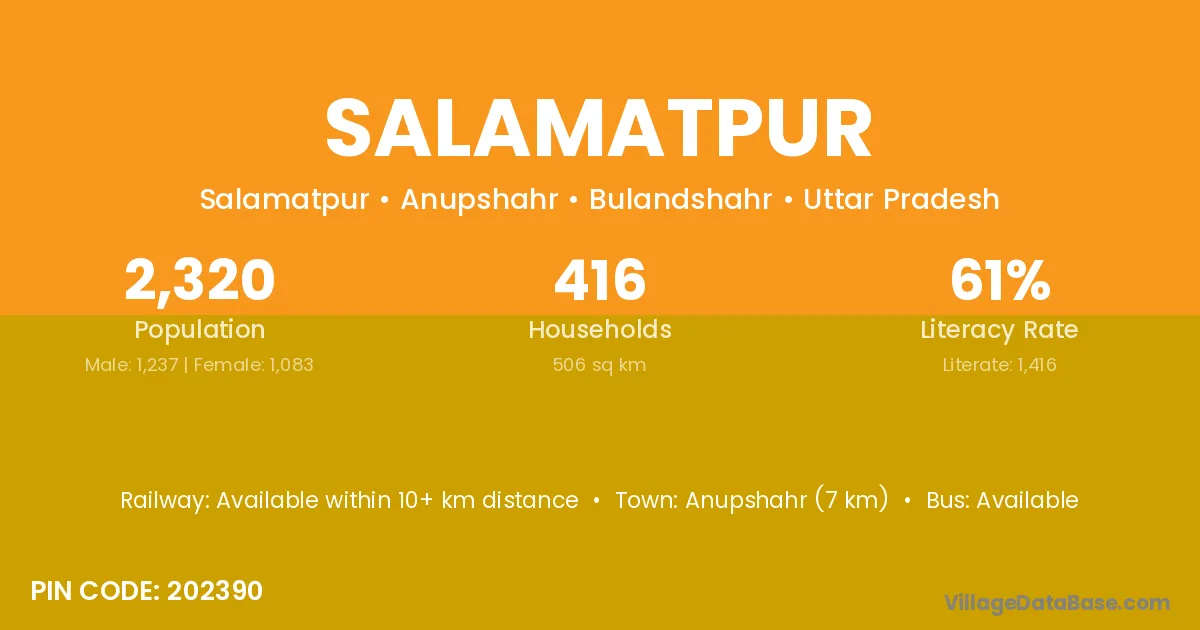 Bahadurganj (2 km) is the nearest town to Salamatpur village for major economic activities and is located approximately 2 km away.