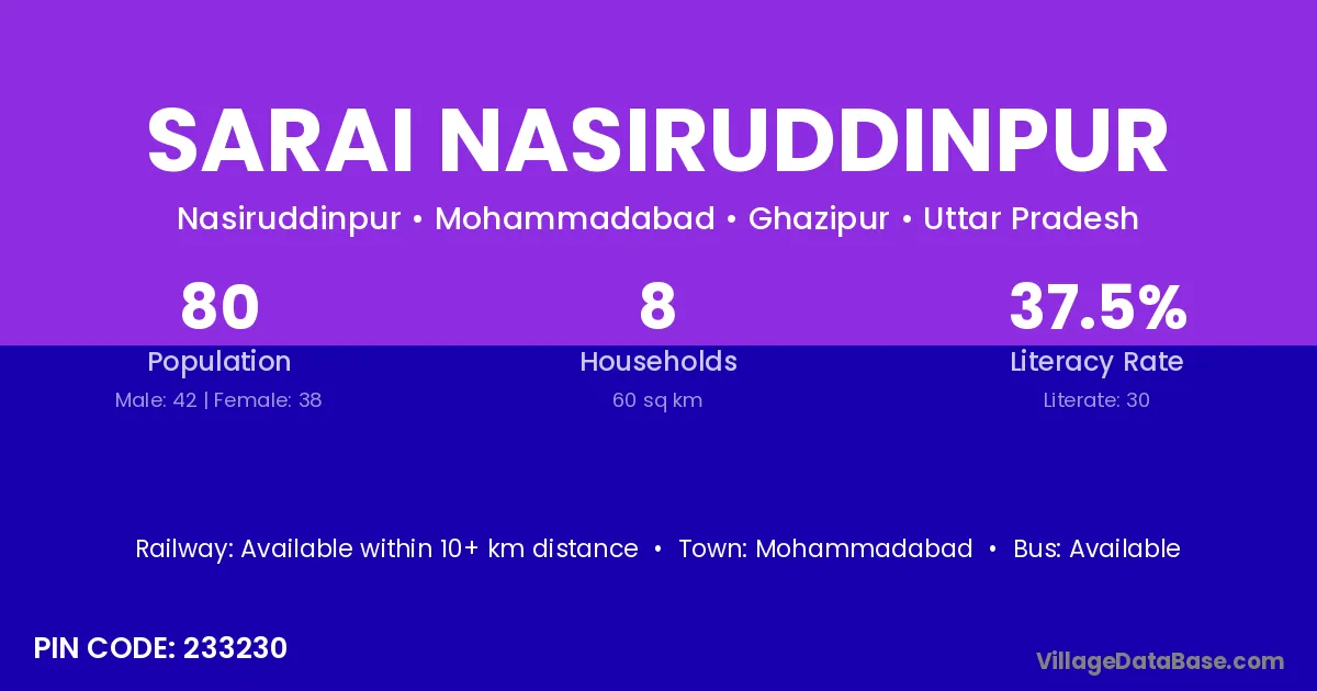 There are approximately 8 households in Sarai Nasiruddinpur village.