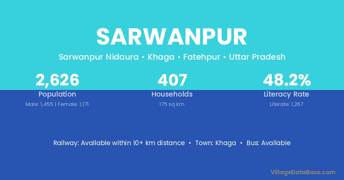 Mohammadabad is the nearest town to Sarwanpur village for major economic activities