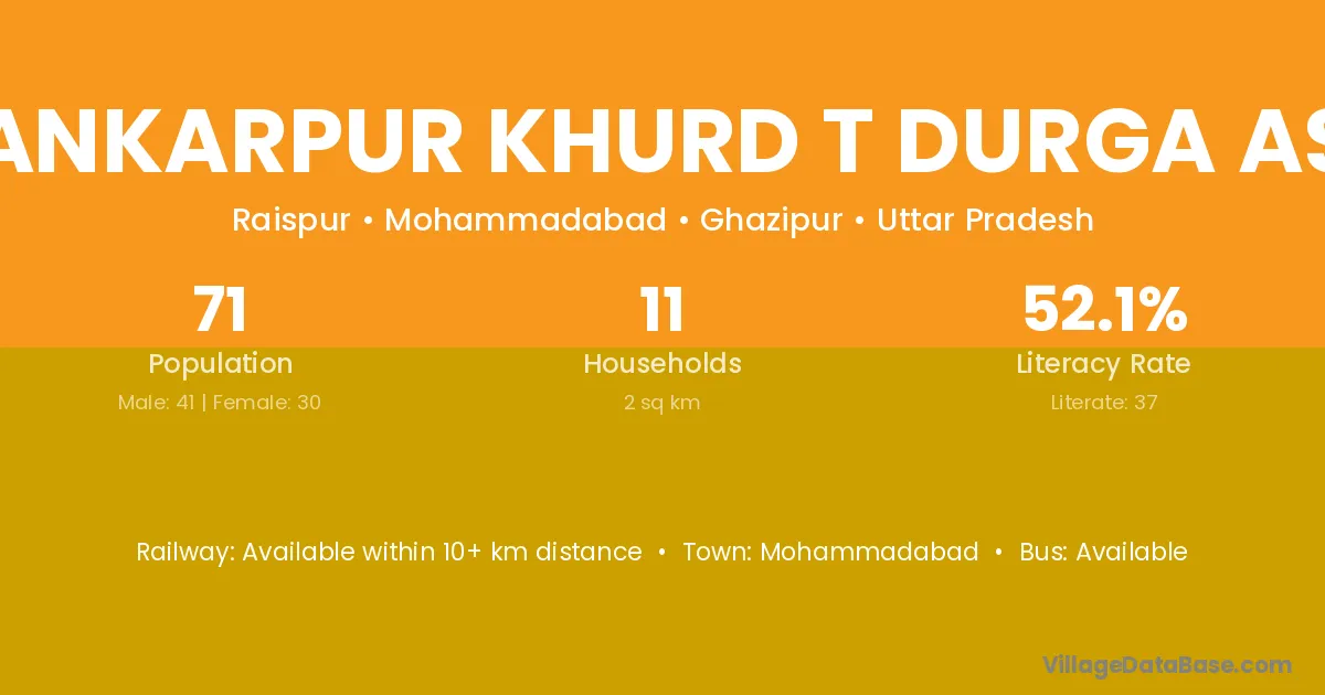 Shankarpur Khurd T Durga Asth village has a total population of 71 people, of which 41 are males and 30 are females.