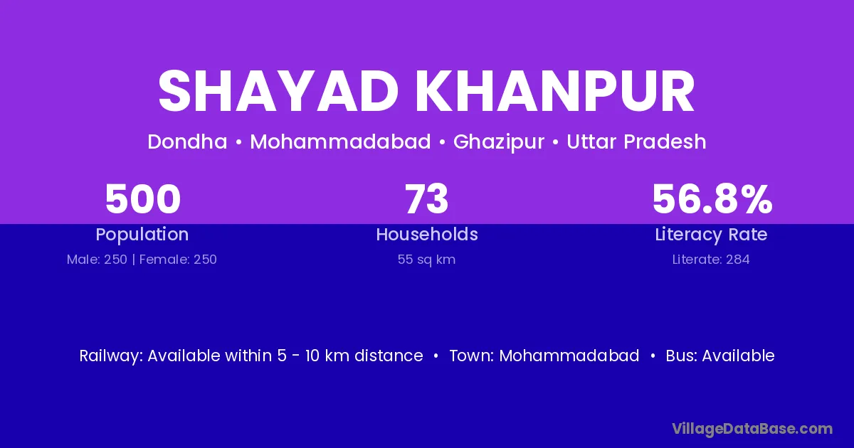 Shayad Khanpur village has a total population of 500 people, of which 250 are males and 250 are females.
