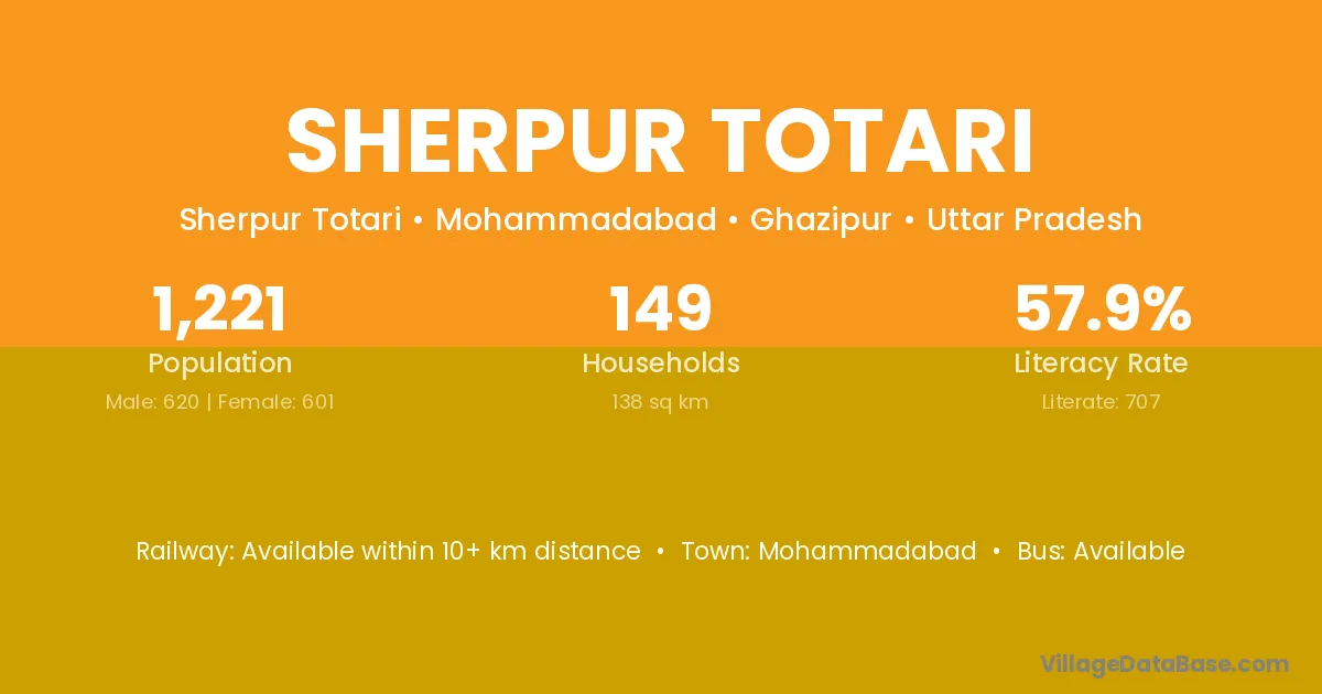 Sherpur Totari village has a total population of 1,221 people, of which 620 are males and 601 are females.