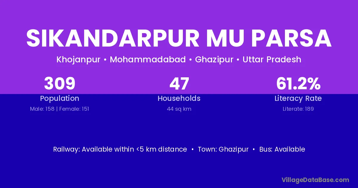 Sikandarpur Mu Parsa village has a total population of 309 people, of which 158 are males and 151 are females.