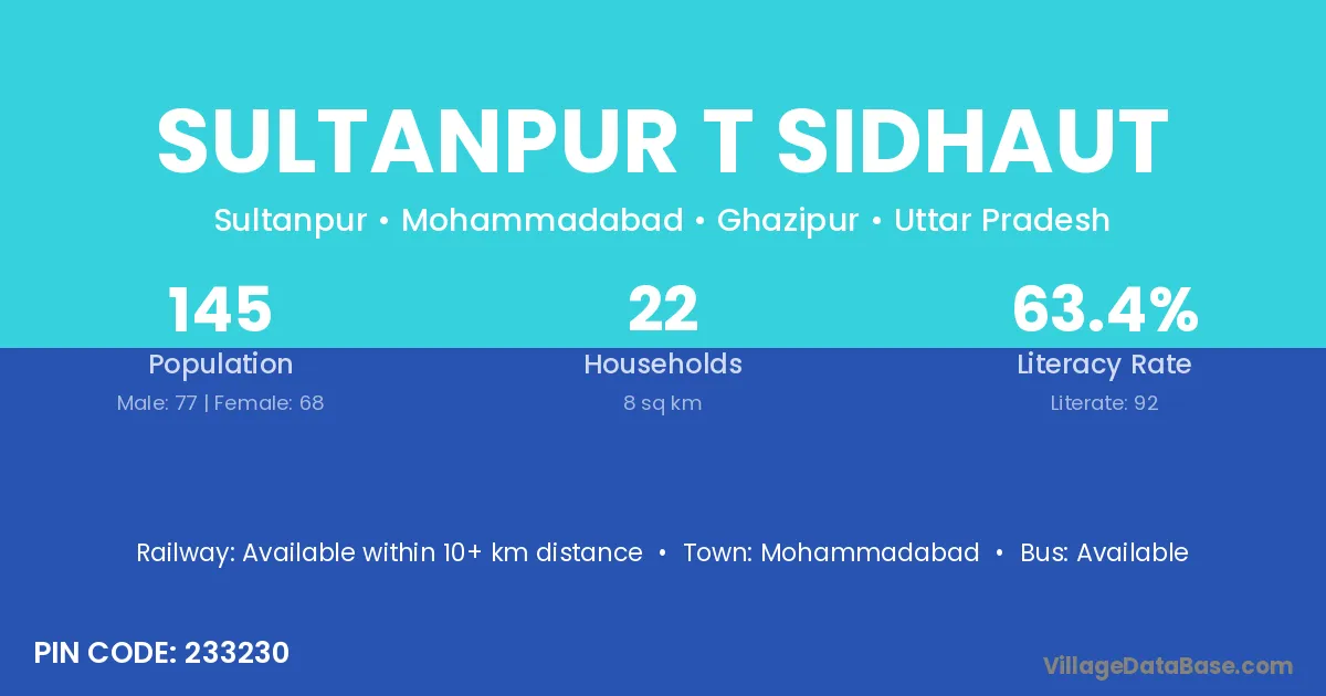 Sultanpur T Sidhaut village has a total population of 145 people, of which 77 are males and 68 are females.