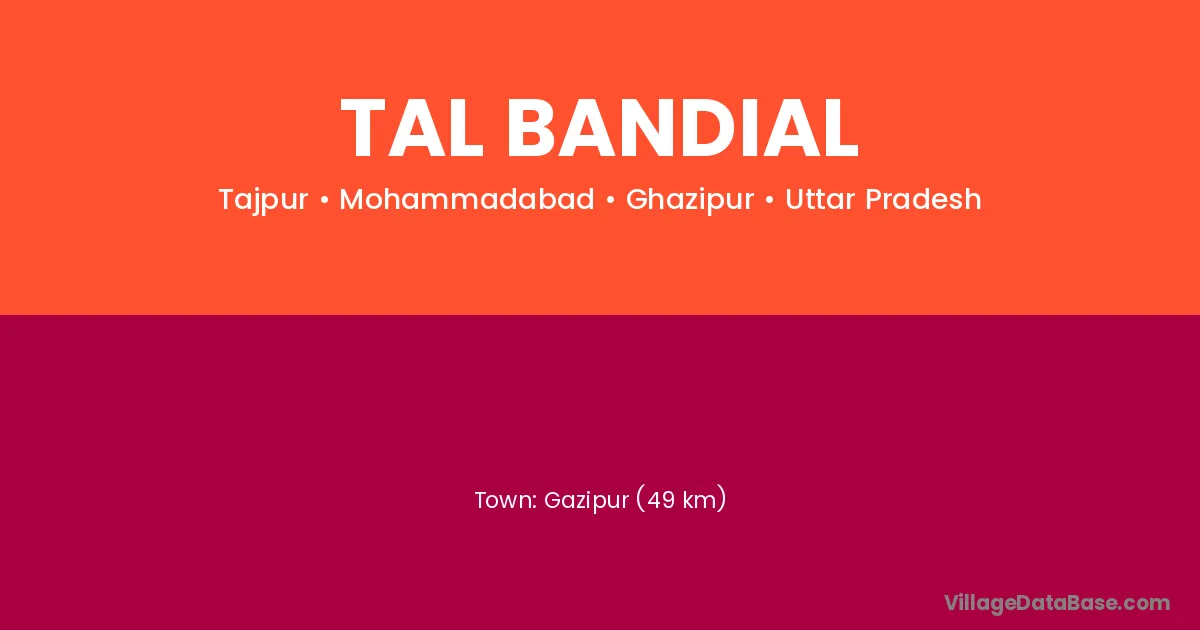 Gazipur (49 km) is the nearest town to Tal Bandial village for major economic activities and is located approximately 49 km away.