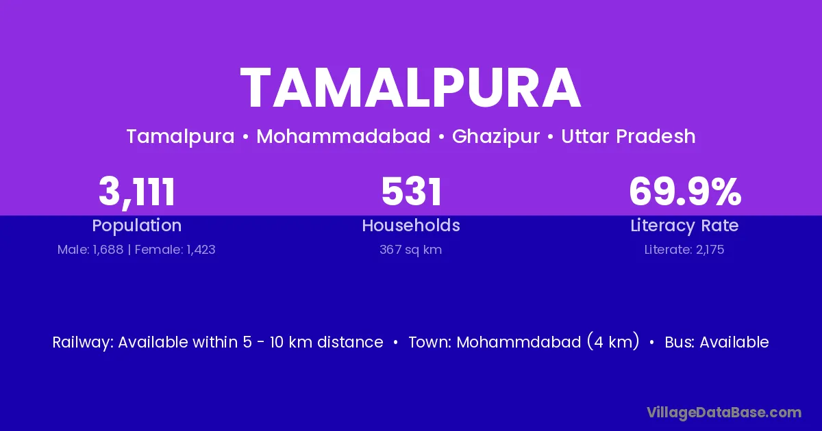 Mohammdabad (4 km) is the nearest town to Tamalpura village for major economic activities and is located approximately 4 km away.