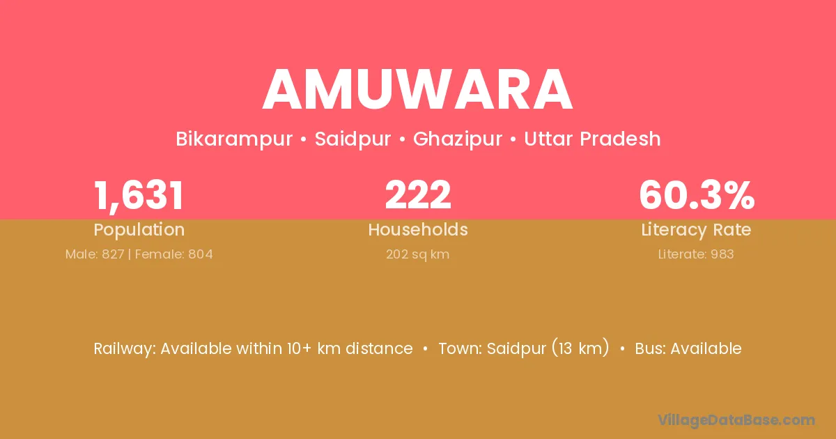Saidpur (13 km) is the nearest town to Amuwara village for major economic activities and is located approximately 13 km away.