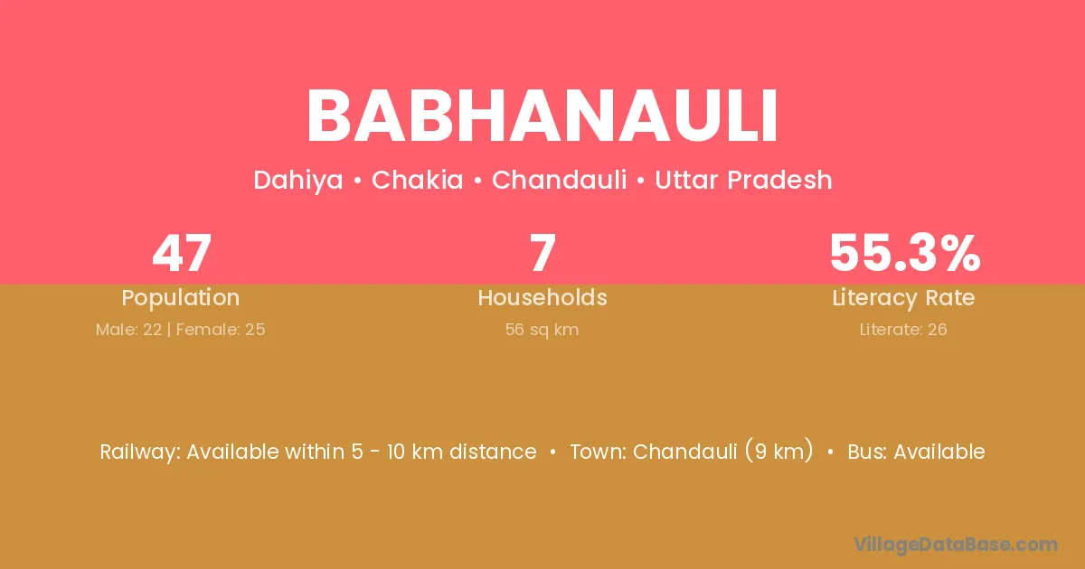 Babhanauli village has a total population of 455 people, of which 228 are males and 227 are females.