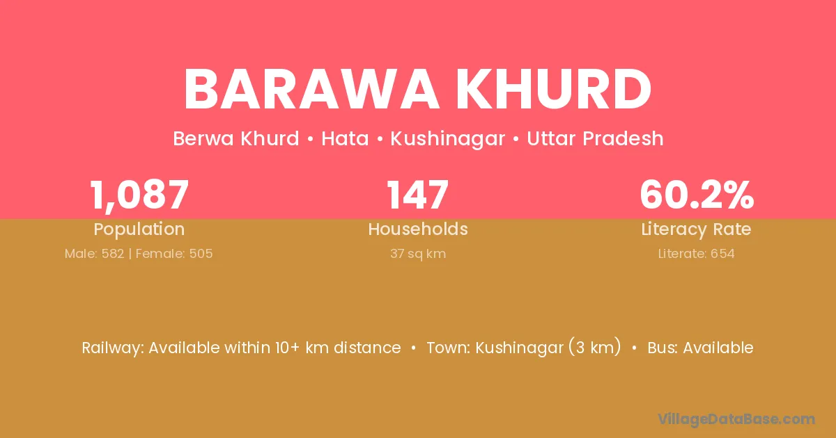 Barawa Khurd village has a total population of 1,014 people, of which 484 are males and 530 are females.