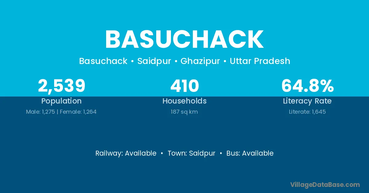 Basuchack village has a total population of 2,539 people, of which 1,275 are males and 1,264 are females.