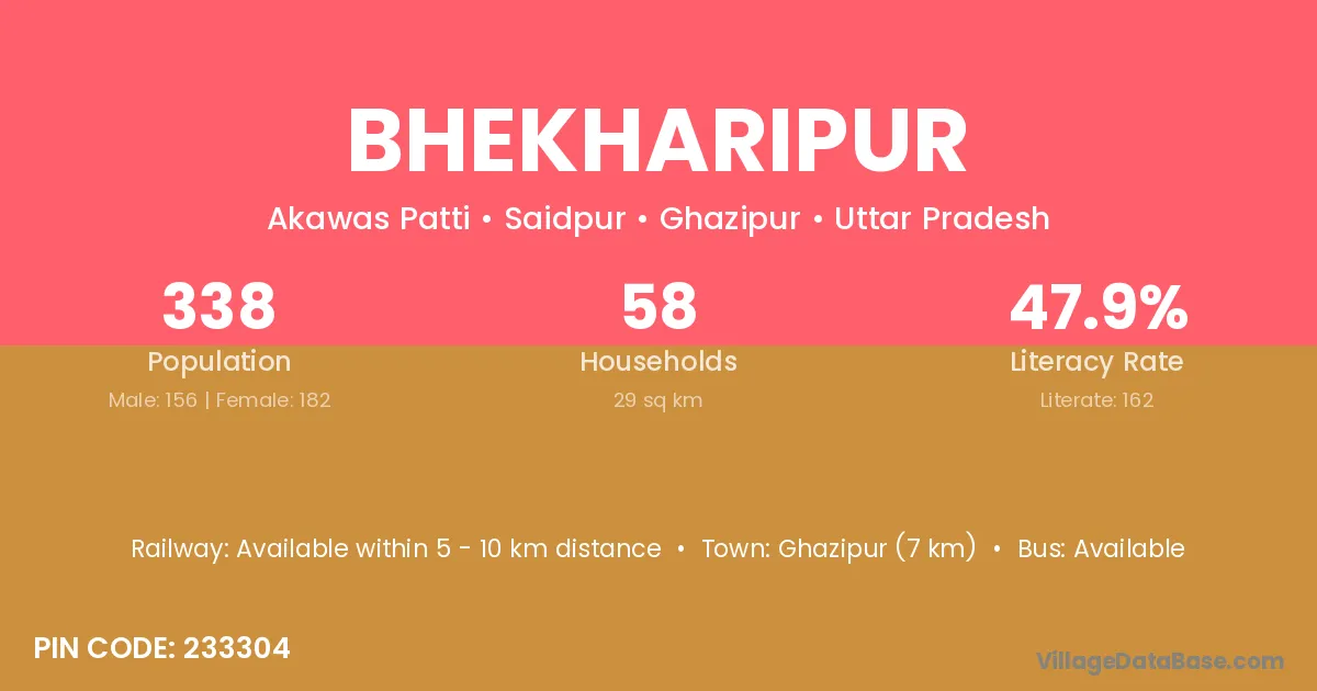 Ghazipur (7 km) is the nearest town to Bhekharipur village for major economic activities and is located approximately 7 km away.