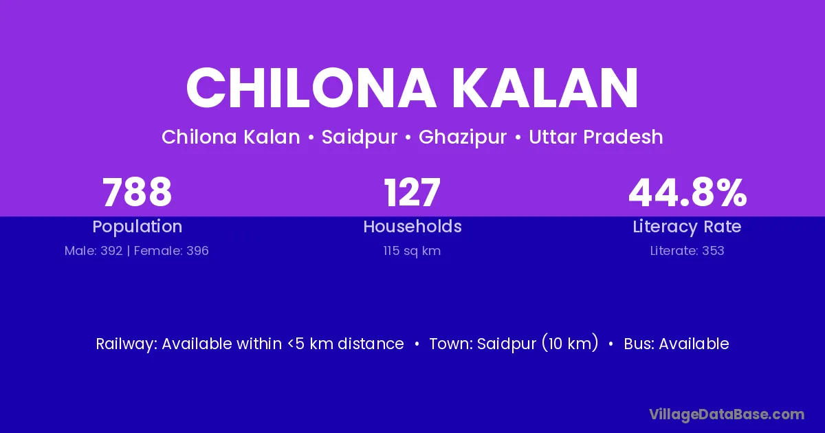 Saidpur (10 km) is the nearest town to Chilona Kalan village for major economic activities and is located approximately 10 km away.