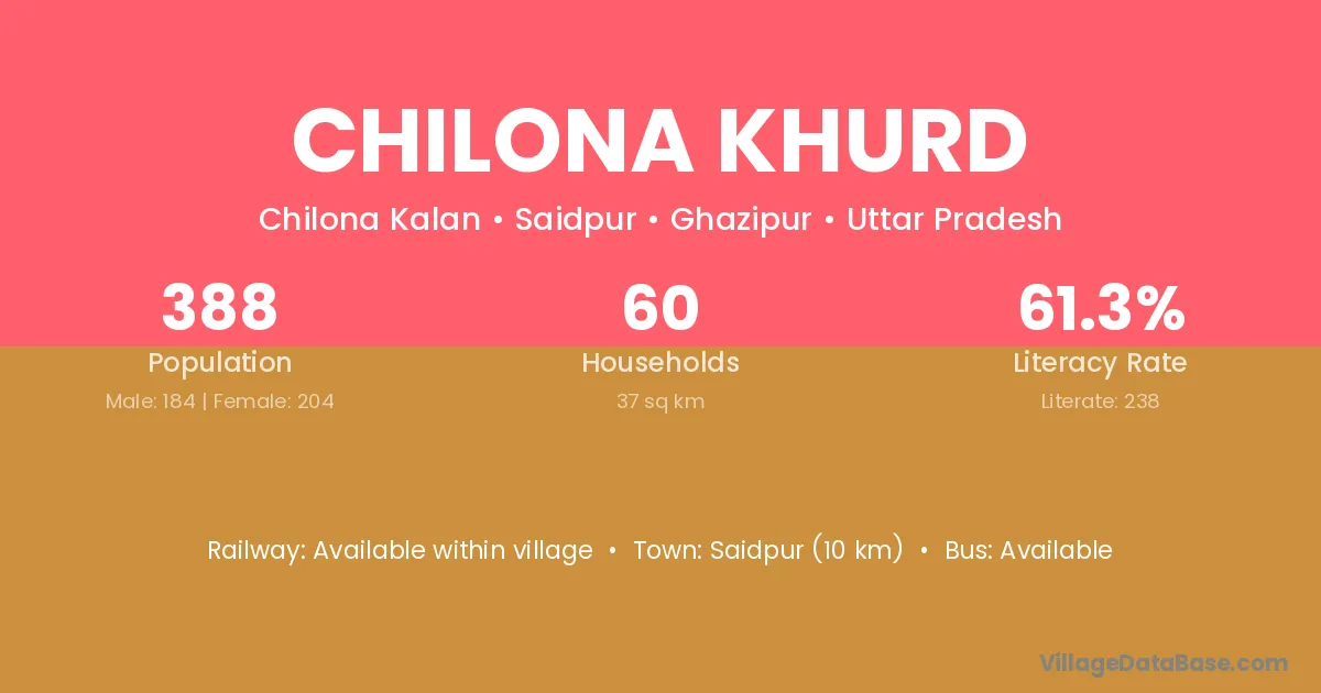 Saidpur (10 km) is the nearest town to Chilona Khurd village for major economic activities and is located approximately 10 km away.