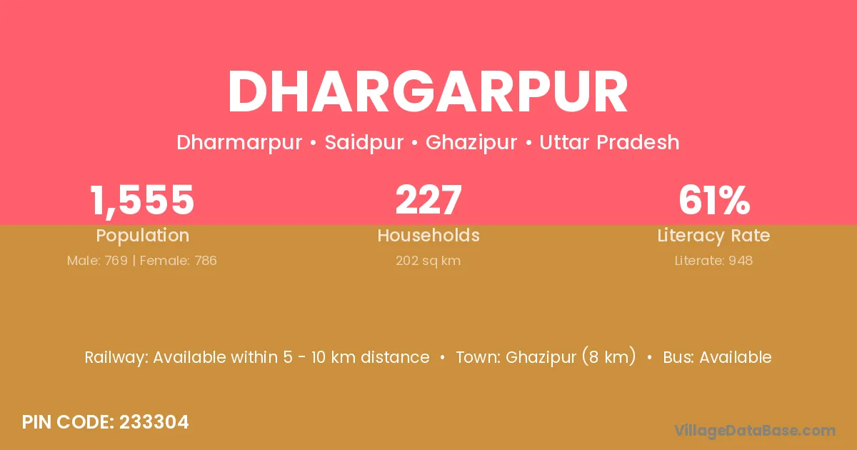 Ghazipur (8 km) is the nearest town to Dhargarpur village for major economic activities and is located approximately 8 km away.