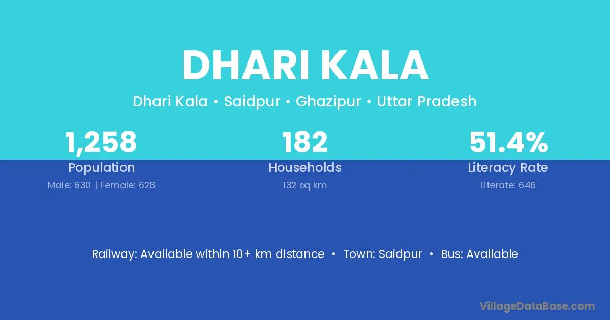 Dhari Kala village has a total population of 1,258 people, of which 630 are males and 628 are females.