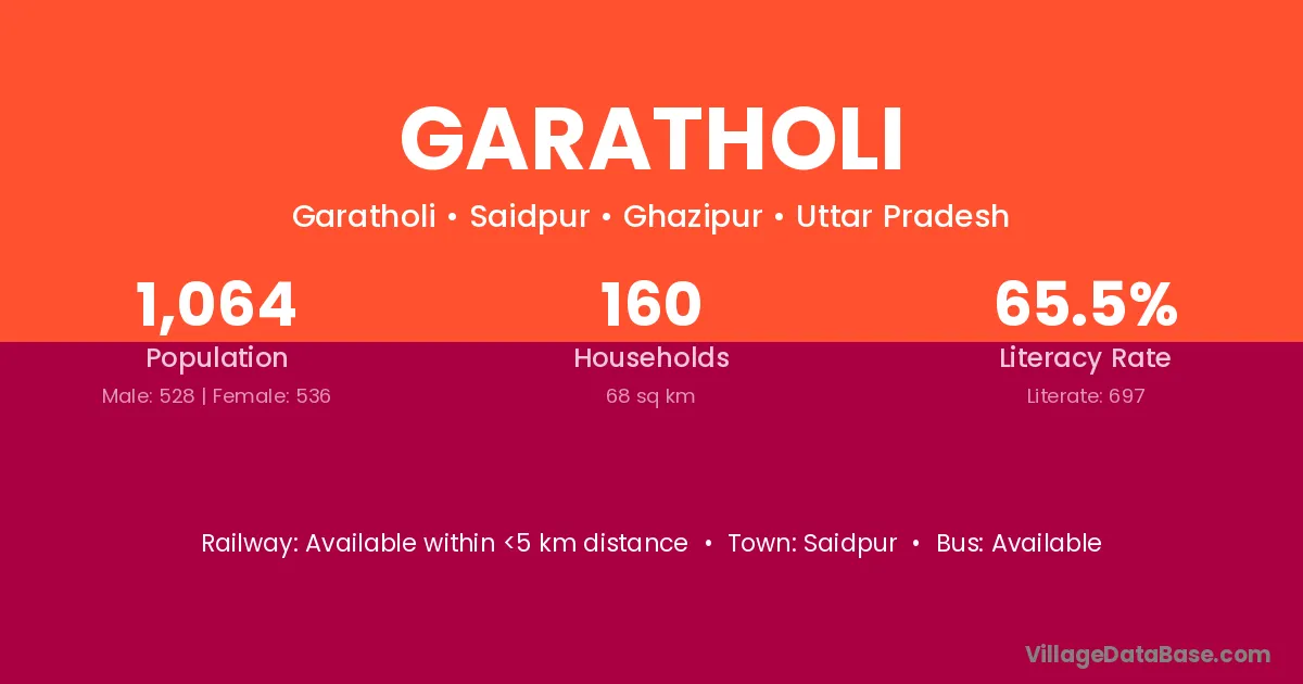 Garatholi village has a total population of 1,064 people, of which 528 are males and 536 are females.