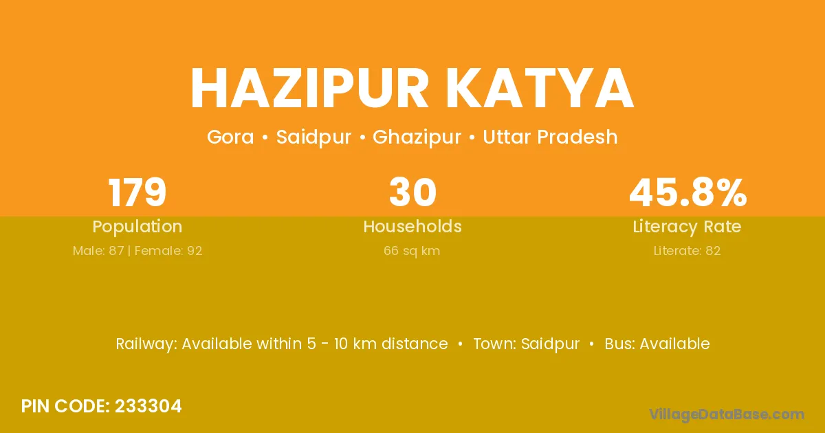 Hazipur Katya village has a total population of 179 people, of which 87 are males and 92 are females.