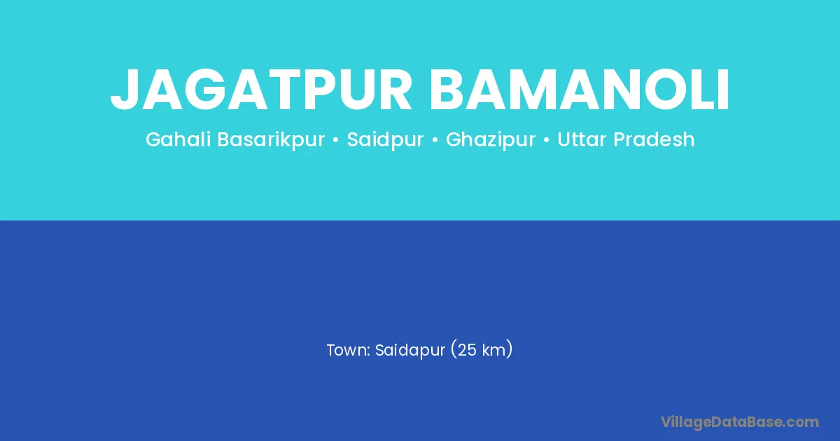 Saidapur (25 km) is the nearest town to Jagatpur Bamanoli village for major economic activities and is located approximately 25 km away.