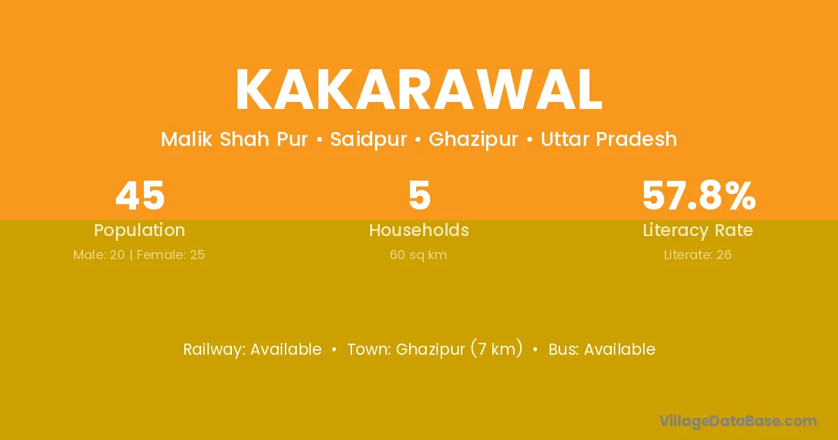 Ghazipur (7 km) is the nearest town to Kakarawal village for major economic activities and is located approximately 7 km away.