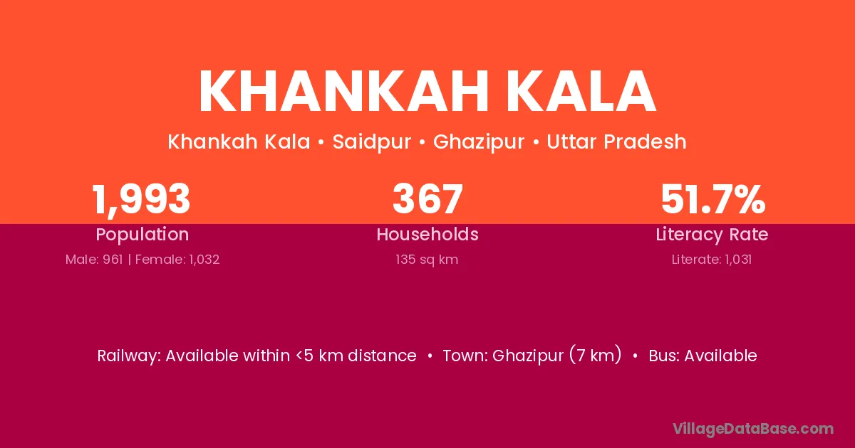 Ghazipur (7 km) is the nearest town to Khankah Kala village for major economic activities and is located approximately 7 km away.
