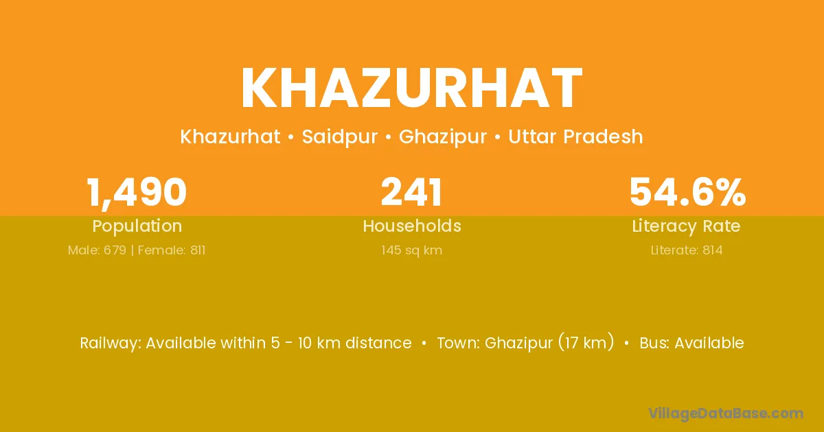 Ghazipur (17 km) is the nearest town to Khazurhat village for major economic activities and is located approximately 17 km away.