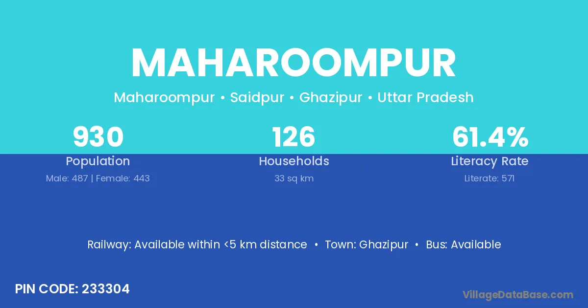 Ghazipur is the nearest town to Maharoompur village for major economic activities