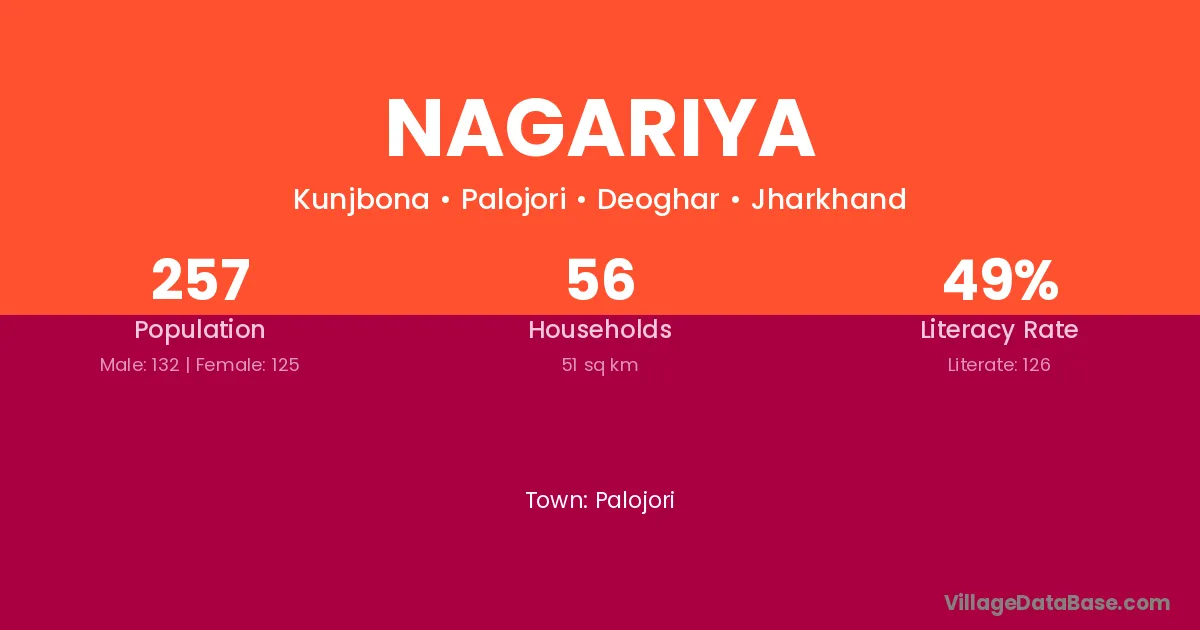 Nagariya village has a total population of 27 people, of which 13 are males and 14 are females.