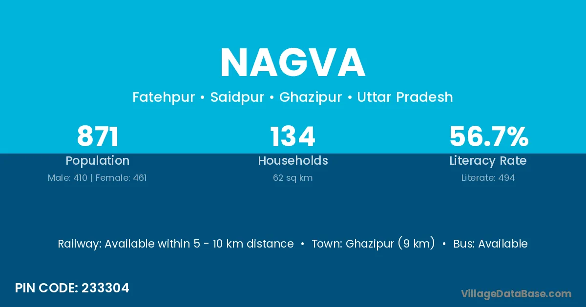 Ghazipur (9 km) is the nearest town to Nagva village for major economic activities and is located approximately 9 km away.