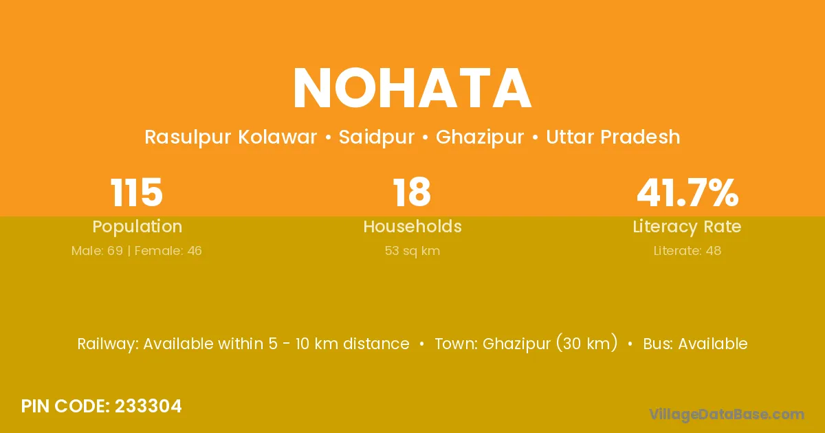 Ghazipur (30 km) is the nearest town to Nohata village for major economic activities and is located approximately 30 km away.