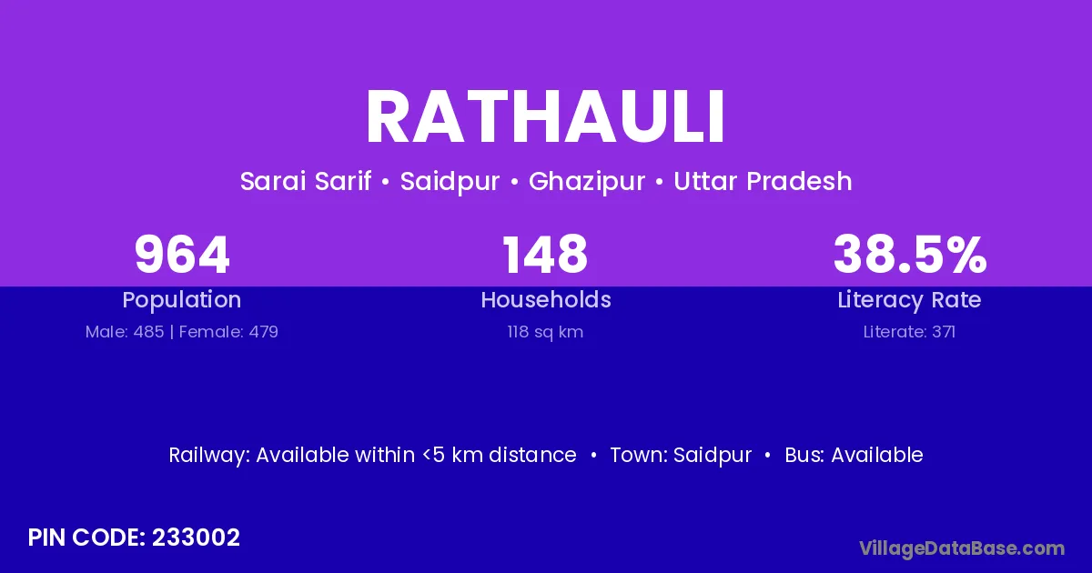 According to Census 2011 information, the village code of Rathauli village is 233002.